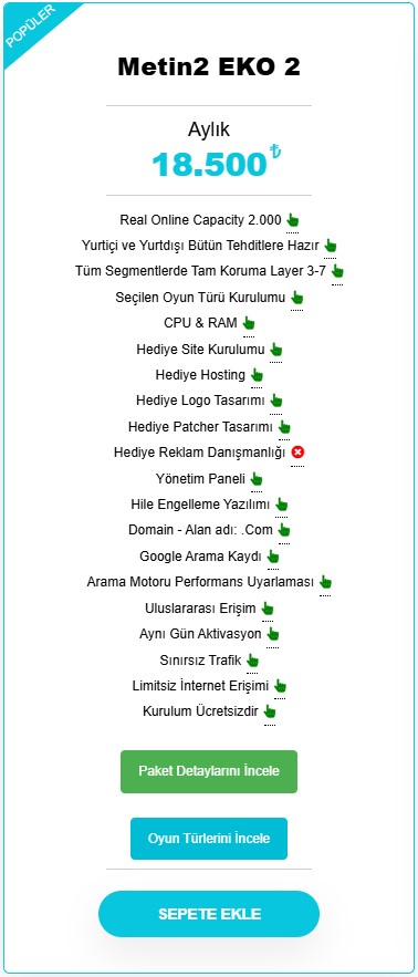 Metin2 EKO 2 Paket Detayları