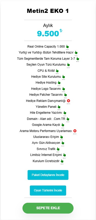 Paket alındığında, paket kapsamında sunulan ve sunulmayan hizmetler aşağıda detaylı bir şekilde açıklanmıştır. Lütfen tüm bilgileri dikkatlice inceleyiniz.